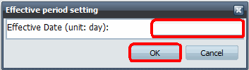 (1) Introduzca [Effective Date (unit: day) (Fecha de entrada en vigor [unidad: día])] (intervalo comprendido entre 1 y 30). (2) Haga clic en [OK (Aceptar)].