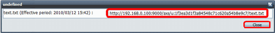 (1) Cuando se muestre el enlace de "URL de una vez", cópielo en el portapapeles. (2) Haga clic en [Close (Cerrar)]. |