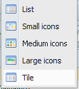 • [Tile (Mosaico)]: Medium icons, Name, Size, Date Updated |