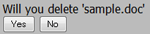 Al hacer clic en [Delete (Eliminar)], aparecerá la siguiente pantalla. Haga clic en [Yes (Sí)] para eliminar el archivo seleccionado.