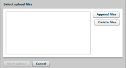 Haga clic en [Append files (Adjuntar archivos)] y seleccione un archivo que desee cargar. Repita este proceso hasta que se seleccionen todos los archivos que desee. Haga clic en [Start upload (Comenzar a cargar)] para cargar los archivos seleccionados.