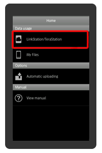 [LinkStation/TeraStation]을 누릅니다. "Close(닫기)"가 표시되면 먼저 [Close(닫기)]를 누른 다음 [LinkStation/TeraStation]을 누릅니다. 이제 공유 폴더의 파일에 액세스할 수 있습니다.